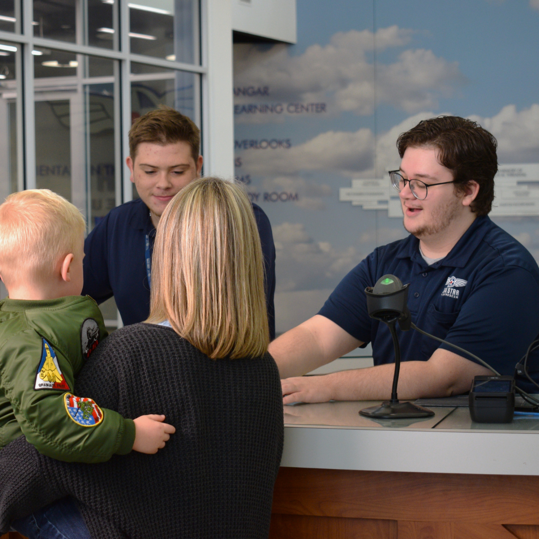 Get a personal overview of our hangars, exhibits, galleries, and programs from our excellent Guest Services team! Our team will help in answering questions and directing guests to any area within the museum.